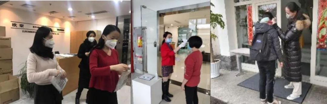 為保障員工身體健康,行政團(tuán)隊為必須到現(xiàn)場工作的小伙伴發(fā)放口罩,在這“一罩難求”的大環(huán)境下感受到公司是用心守護(hù)每一位歐蒙人。行政的姑娘們早于大家的上班時間,提前對辦公區(qū)進(jìn)行消毒處理,使每個辦公區(qū)配備消毒洗手液、板藍(lán)根沖劑、體溫槍,做好員工安全保障工作。