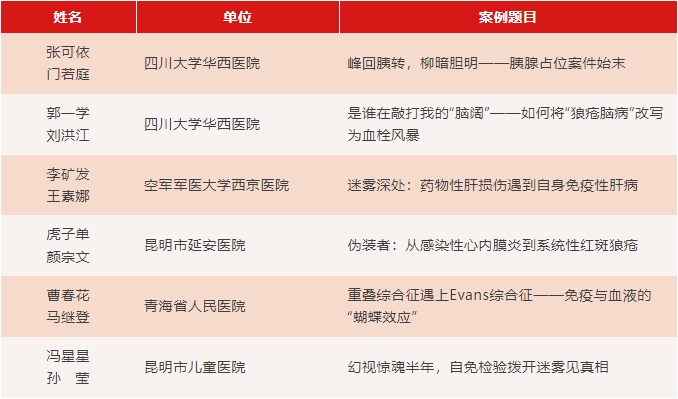 本次西部區(qū)域案例展示的一大亮點(diǎn)是參展案例來(lái)自風(fēng)濕科、腎臟內(nèi)科、兒科、神經(jīng)內(nèi)科、皮膚科、消化科、呼吸科等多個(gè)臨床學(xué)科,其中不乏罕見(jiàn)的復(fù)雜疑難疾病案例,檢驗(yàn)人與臨床醫(yī)生密切配合,從各自的專業(yè)視角對(duì)疾病進(jìn)行深入分析,展現(xiàn)了實(shí)踐診療過(guò)程中多學(xué)科合作的重要意義,也體現(xiàn)了檢驗(yàn)人轉(zhuǎn)換思維,積極參與臨床決策的角色轉(zhuǎn)變。檢驗(yàn)與臨床在碰撞中加深彼此理解,相互啟發(fā),共同探尋疾病真相,守護(hù)患者生命健康。